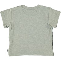 Emilio is a grey, cotton baby t-shirt with an action placemet print on the front. Emilio has a button closure at the neck.
