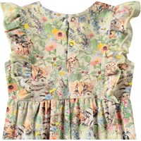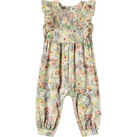 Jumpsuit in soft organic cotton for the little ones. The jumpsuit is sleeveless and has a cute ruffle edge at the front and back. The button fastening at the neck and between the legs makes it easy to put on and take off. All-over print of animal babies in a flowerbed.