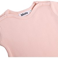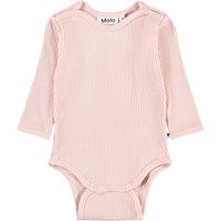 Pink, long-sleeved bodysuit for the little ones made of organic cotton rib. It has nice edging and snap buttons on the shoulders and between the legs for easy dressing and undressing.