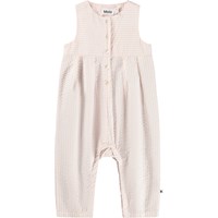 Pink jumpsuit for the little ones made of organic cotton with stripes. It is a sleeveless model with buttons, long legs and snap buttons between the legs for easy dressing.