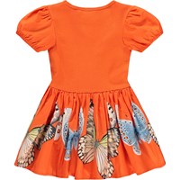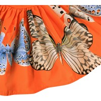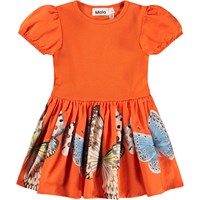Orange dress for the little ones made of organic cotton with a butterfly print on the skirt. The top has a close-fit made of ribbed jersey with short, poplin puff sleeves, and the attached poplin skirt has nice volume.