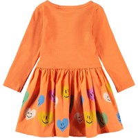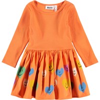 Long-sleeved, orange dress for the little ones made of organic cotton with a heart print on the skirt. The top has a close-fit made of soft, ribbed jersey, while the poplin skirt provides nice volume. It is a comfortable fit and easy to put on and take off.