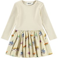 Long-sleeved, yellow dress for the little ones made of organic cotton with an animal print on the skirt. The top has a close-fit made of soft, ribbed jersey, while the skirt has nice volume. The snap button on the shoulder makes it easy to take on and off.