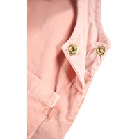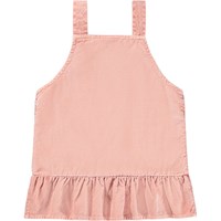 Rose pinafore dress made of soft, organic cotton velvet with brass snap buttons at the straps and sides, as well as a fine, voluminous skirt. The dress has small, fine pockets at the front and it is easy to put on to make it both practical and elegant.
