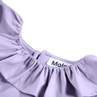 Light purple poplin dress for the little ones made of organic cotton. The top is in ribbed jersey with a sweet collar and the skirt is in poplin. The dress has a nice button closure at the back to make it easy to put on and take off.