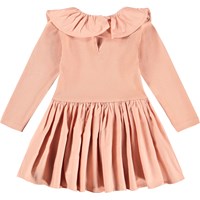 Rose poplin dress for the little ones made of organic cotton. The top is in ribbed jersey with a sweet collar and the skirt is in poplin. The dress has a nice button closure at the back to make it easy to put on and take off.