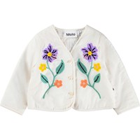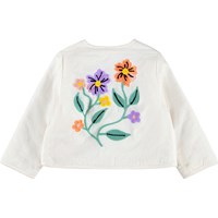 White jacket for the little ones made of cotton. The jacket has a v-neckline, a colorful embroidery on the front and back, as well as mother-of-pearl buttons. Combine it with the matching jacket for a complete look.