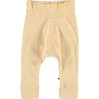 Sara is a pair of baby trousers in yellow with pink striped rib. They have a wide elastic waist and roll up at the legs. Wear the trousers with the matching top.