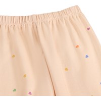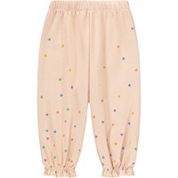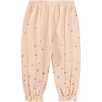 Pink trousers for the little ones made of soft, organic cotton with a heart print. They have an elastic waist and fine ruffle details at the ankles.