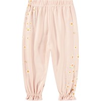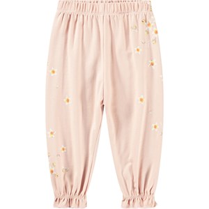 Pink trousers for the little ones made from organic cotton jersey with a placement print. The trousers have a ribbed waistband and elastic at the ankles, creating a cute little ruffle. The print consists of small, delicate white flowers.