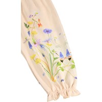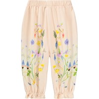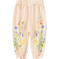 Pink trousers for the little ones made of soft, organic cotton with a floral print. They have an elastic waist and fine ruffle details at the ankles.