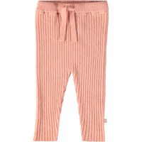 Powder coloured baby trousers in a wool blend with rib and ties at the waist.