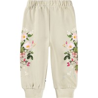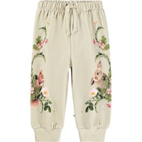 Soft pants for the little ones made of organic cotton. The pants are light green with a squirrel and flower print. The pants have elastic and drawstring around the waist and ribbed cuffs around the legs. They are easy to take off and put on and provide plenty of freedom to move.