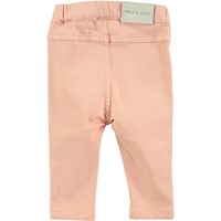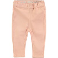 Cool pink jeggings with a leather patch on the back and an elastic waist, which makes them easy to get on.