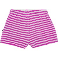 Pink and off-white terry shorts for small children. The elastic waist ensures a good fit, and the soft cotton terry is comfortable and dries quickly after a swim.