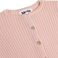 Pink cardigan for the little ones made of ribbed, organic cotton. It has ribbed edges and fastens with small mother-of-pearl buttons at the front.