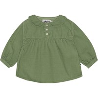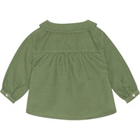 Green, organic baby blouse in pin wale corduroy for small children. This shirt is in 100% cotton, has long sleeves and a for easy dressing. Wear it with trousers in the same colour.