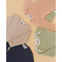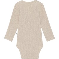 Faros is a beige, unisex baby bodysuit in rib. Faros has easy snap closure between the legs.