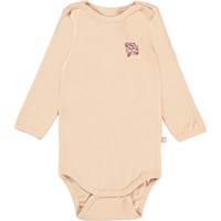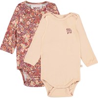 Foss is a long sleeve baby bodysuit. Foss comes in a 2-pack, which has one red floral bodysuit and one in a rose colour. It has easy snap closure at the neck and between the legs.
