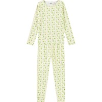 Off-white pyjamas with long sleeves and legs in stretchy organic cotton. The set is divided into a close-fitting top with a round neck and a pair of pants with an elastic waistband, making them comfortable to wear. The set features an all-over print of pink strawberries and white flowers, blending together in a beautiful pattern.