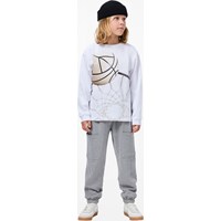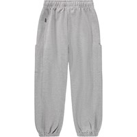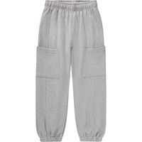 Grey trousers made of soft, organic cotton with thigh pockets. They have an adjustable elastic at the waist with an internal drawstring and elastic at the ankles to ensure a relaxed and flexible fit. The trousers are perfect for play and everyday wear.