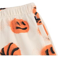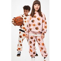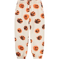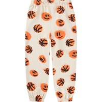 Soft, beige sweatpant made of organic cotton with orange basketball print. The trousers have a regular fit, elastic waist, internal drawstring, side pockets, and elastic at the ankles.