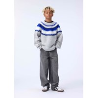Denim jeans made of cotton with a black and blue wash. The jeans have 5 pockets and a wide fit, inspired by the skateboarding scene.