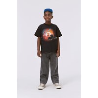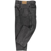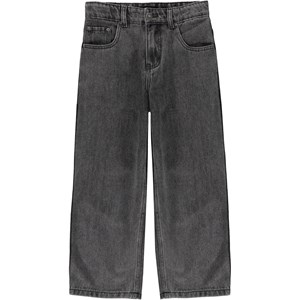 Dark grey jeans in a medium light wash. They are in a cotton/viscose blend, have long legs and are in a loose fit. The jeans' waistband has an adjustable inner elastic so they fit all children perfectly. Sizes 92-134 have an easy snap closure, while sizes 140-176 have a regular jeans button.