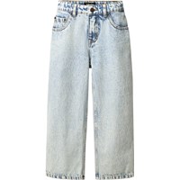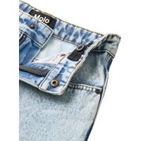 Light blue jeans made of organic cotton denim. The jeans have 5 pockets, straight legs, a zip fly, and a loose fit with an adjustable elastic at the waist. The smallest sizes (92–134) have a press stud, while sizes 140–176 have a classic jeans button.