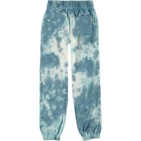 Am is a pair of sweatpants with a light blue and white tie-dye print. They have elastic at the waist and at the legs. Wear them with the matching sweatshirt.