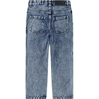 Dark blue oversized jeans with 5 pockets and belt loops. The jeans have an oversized fit and a peace patch by one pocket.The waistband can be adjusted with an internal elastic, so they fit perfectly for all children. Sizes 92-134 have a snap button, making it easy to take the pants on and off - sizes 140-176 have a regular jeans button.If you prefer a more regular fit, we recommend choosing a size smaller than usual. This also applies if the child is between two sizes.
