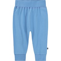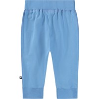Blue trousers for the little ones made of organic cotton jersey. The trousers have a wide, elastic ribbed around the waist and ankles to ensure a good and comfortable fit. They are soft and flexible with plenty of room for movement.
