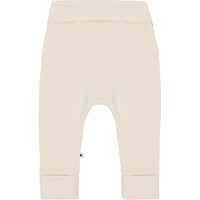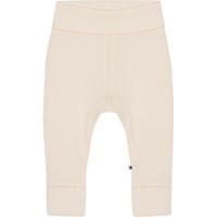 San is a pair of mother of pearl coloured baby trousers in rib. They have rolled, wide elastic at the waist and legs.