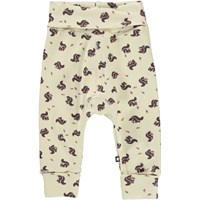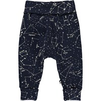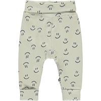 San is a pair of soft, light grey baby trousers with a print of small smiley faces. They have wide elastic at the waist and legs. The waist and legs can also be rolled up or down. Wear them with a matching top.