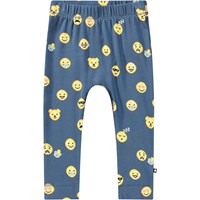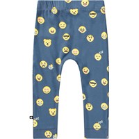 Dark blue leggings in organic cotton for the little ones. The leggings are snug-fitting with an elastic waistband and are soft and comfortable to move in. They have an all-over print of cute, yellow-pixel emojis.