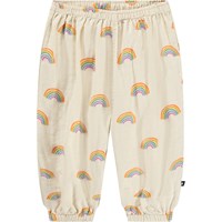 Beige trousers for the little ones made of organic cotton with a rainbow print. They have a loose fit, elastic waist and elastic at the ankles, making them easy to take on and off. The trouseras are light and comfortable which make them perfect for everyday use.