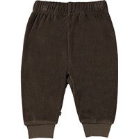 Brown trousers in a soft cotton velour for small children. These trousers are in 100% cotton, and they have elastic and ties at the waist and rib at the legs. Wear them with the Derry sweatshirt in the same colour for the perfect fit.