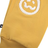 Soft organic cotton pants for the little ones. The pants are yellow with soft white faces in different moods on the knees. The pants have elastic and drawstring at the waist and ribbed cuffs at the ankles. They are easy to take off and put on and provide plenty of space to move. Combine it with the matching sweatshirt for a complete outfit.