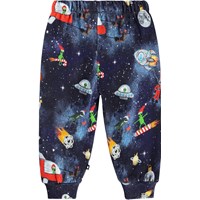 Soft pants for the little ones made of organic cotton. The pants are dark blue with a print of life in space. The pants have elastic and a tie at the waist and ribbed cuffs at the ankles. They are easy to put on and take off and have plenty of space to move. Combine it with the matching sweatshirt for a complete outfit.