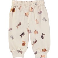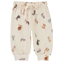 Off-white trousers in an all over print for small children that shows small sweet and curious bunnies in various colours that are hopping around, exploring the world. These trousers are in 100% cotton and have elastic with ties at the waist as well as rib at the legs. Wear the trousers with the Disc jumper in the same print for the perfect set.