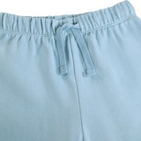 Soft, blue sweatpants for the little ones made of organic cotton with funny patches on the knees. The sweatpants have elastic and drawstring at the waist, ribbed edges at the ankles, and an unbrushed inside.