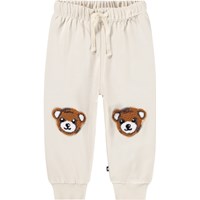 Soft organic cotton pants for the little ones. The pants are off-white with soft brown bears on the knees. The pants have elastic and a drawstring at the waist and ribbed cuffs around the ankles. They are easy to put on and take off and provide plenty of space to move. Combine it with the matching sweatshirt for a complete outfit.