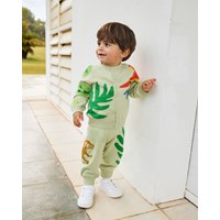 Knitted pants in organic cotton for the little ones. The pants have ribbing at the waist and legs, ensuring a comfortable fit. Knitted in light green and decorated with jungle motifs. Pair with a matching cardigan for a complete look.
