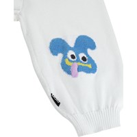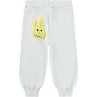 Light blue knitted trousers for the little ones made of organic cotton with fun figures. They have ribbed edges at the waist and ankles for a comfortable fit.