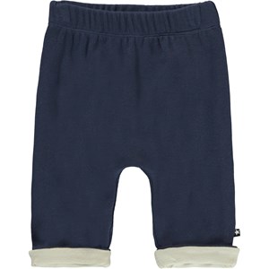 Soyo is a pair of blue baby sweatpants with an elastic waist and roll up at the legs. The trousers have a roomy fit.