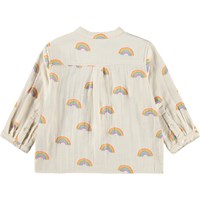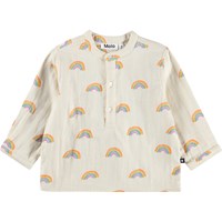 Long-sleeved, cream-coloured shirt with a rainbow print made of soft, organic cotton for the little ones. The shirt has a soft, round collar and a button closure at the front which makes it comfortable and easy to put on and take off.