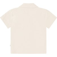 Linen shirt for the little ones. The shirt has short sleeves, a nice collar, and button fastening with light mother-of-pearl buttons, making it easy to put on. The shirt is beige with a small embroidered smiling face on the chest.