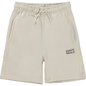Adian is a pair of unisex shorts in light beige with a drawstring at the waist.