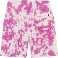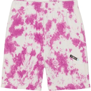 Baggy shorts jersey in purple and white tie-dye in organic cotton. faces that are melting together. The shorts are in loose fit with a wide elastic waist with a drawstring to ensure a good fit. The shorts have side seam pockets and a single back pocket. Molo's tie-dye print is unique and made by hand, so the print may vary from style to style.