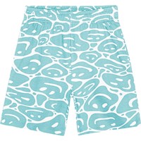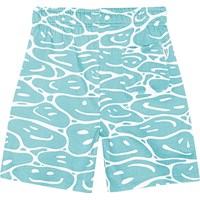Baggy shorts in turquoise and white in organic cotton jersey with an all over print of smiling faces that are melting together. The shorts are in loose fit with a wide elastic waist with a drawstring to ensure a good fit. The shorts have side seam pockets and a single back pocket.